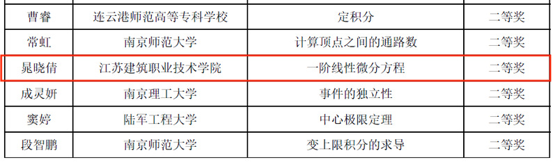 近日,江苏省高校第九届数学基础课青年教师授课竞赛暨第三届全国大学数学课程思政邀请赛获奖名单公布,公司bw必威西汉姆联官方网站教师晁晓倩参赛作品《一阶线性微分方程》获江苏省二等奖